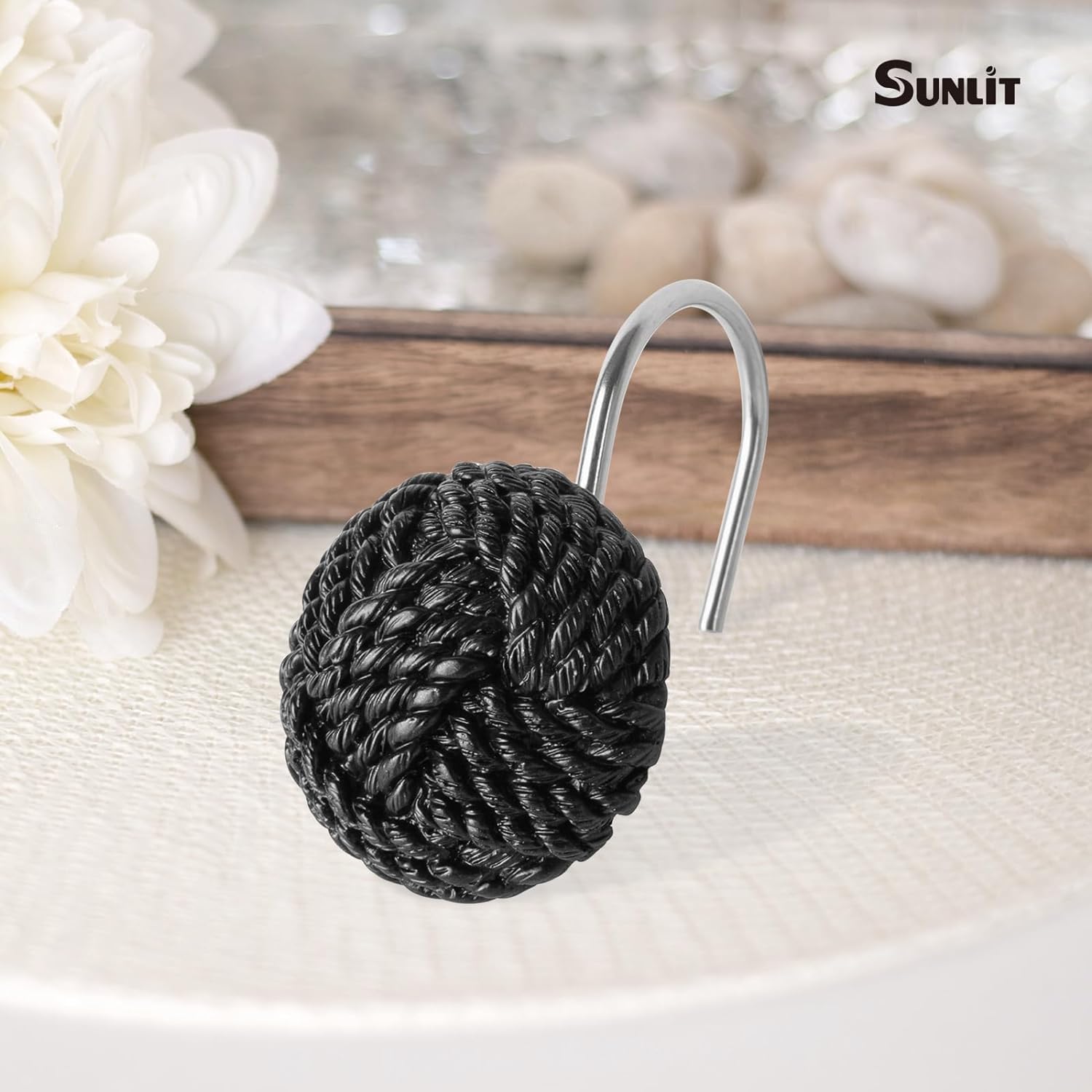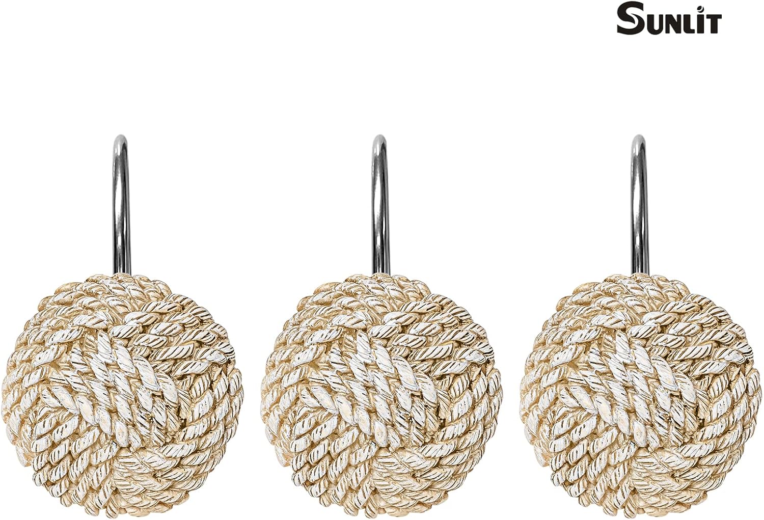 Sunlit Boho Knots Shower Curtain Hooks, Home Decorative Shower Curtain Rings for Bathroom, Seaside Nautical Shower Curtain Hangers Bathroom Accessories, Set of 12